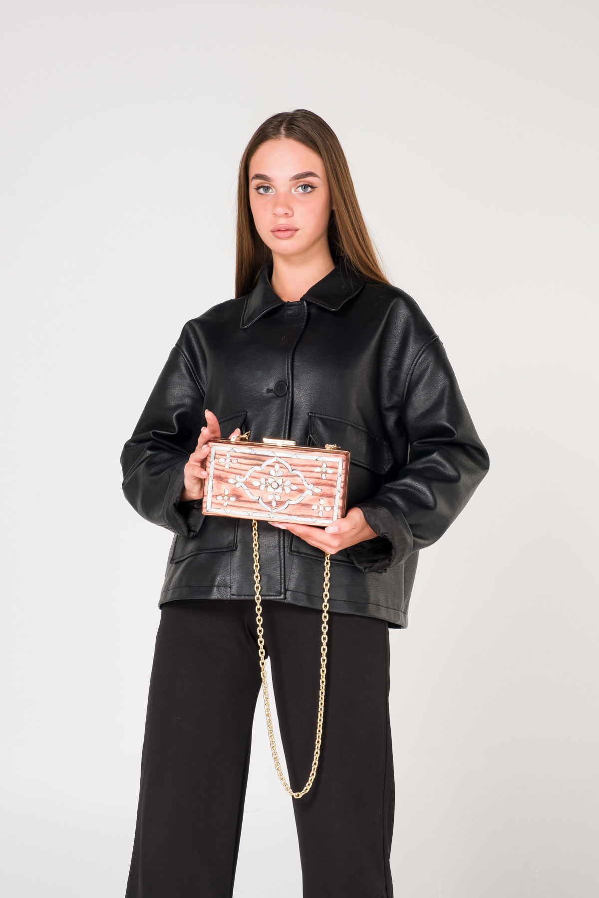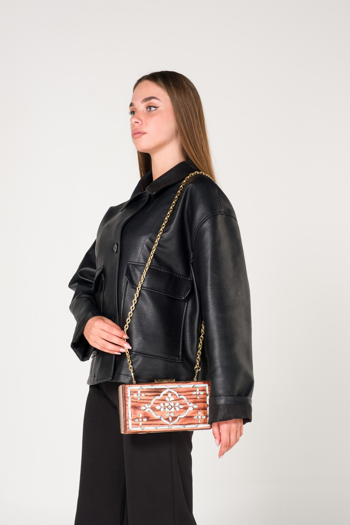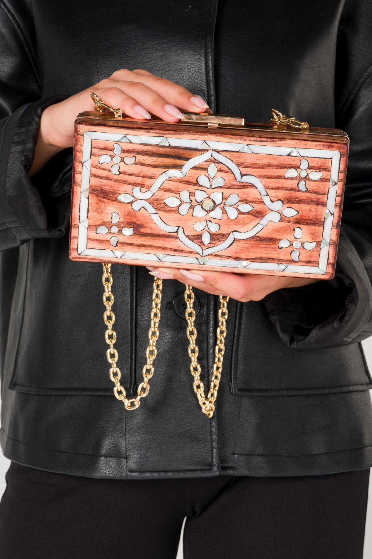 AHŞAP ÜZERİNE SEDEF KAKMA ELİŞİ ÇANTA