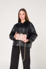 EBRU TRANSPARAN BASKILI DERİ ÇANTA