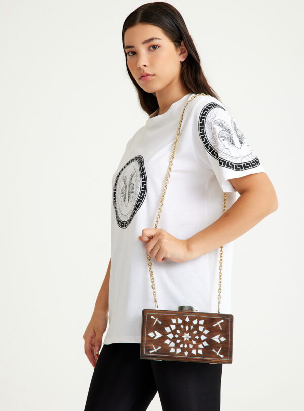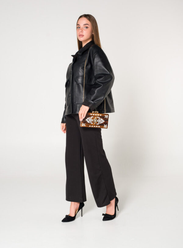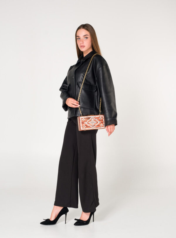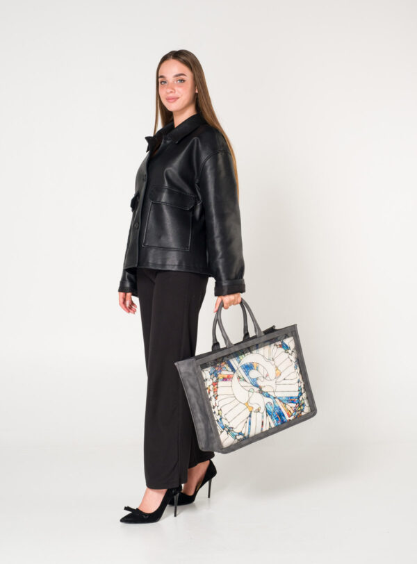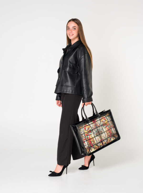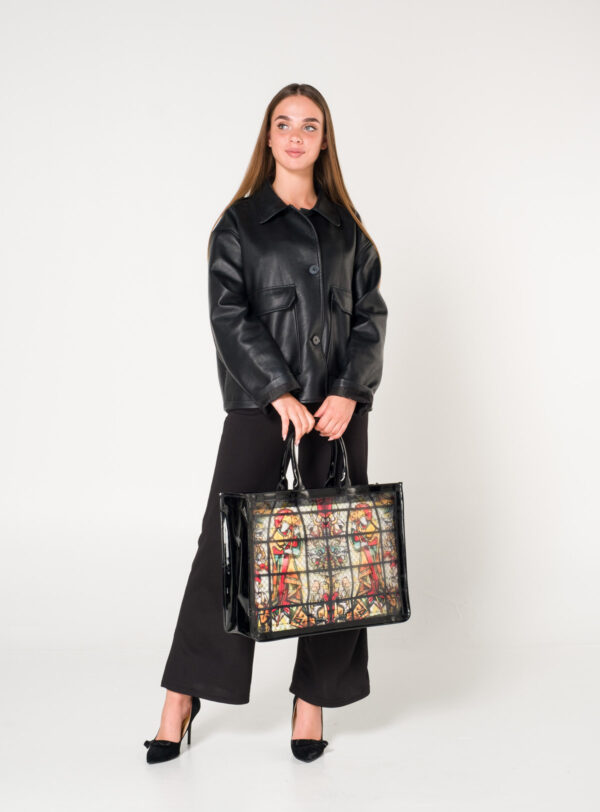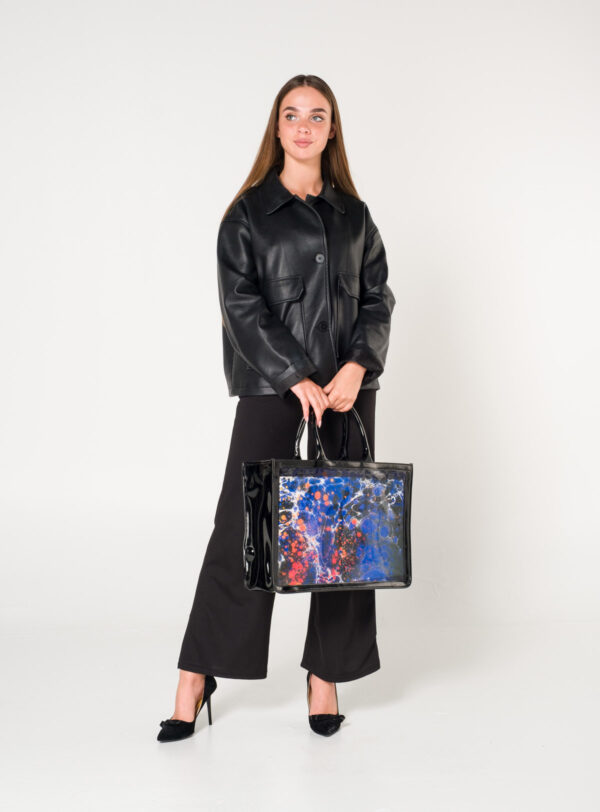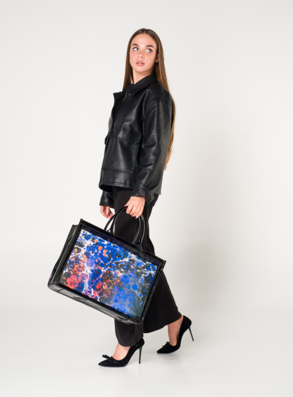 EBRU TRANSPARAN BASKILI DERİ ÇANTA