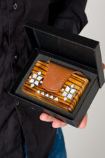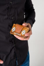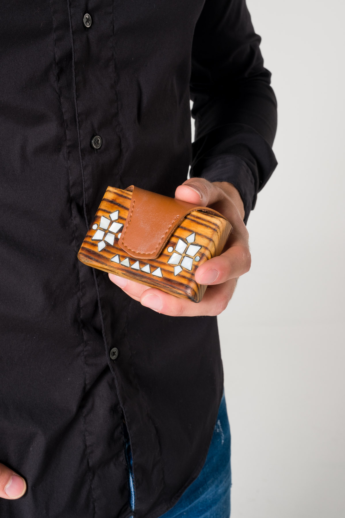 Doğal ahşap üzerine sedef kakma kartvizitlik