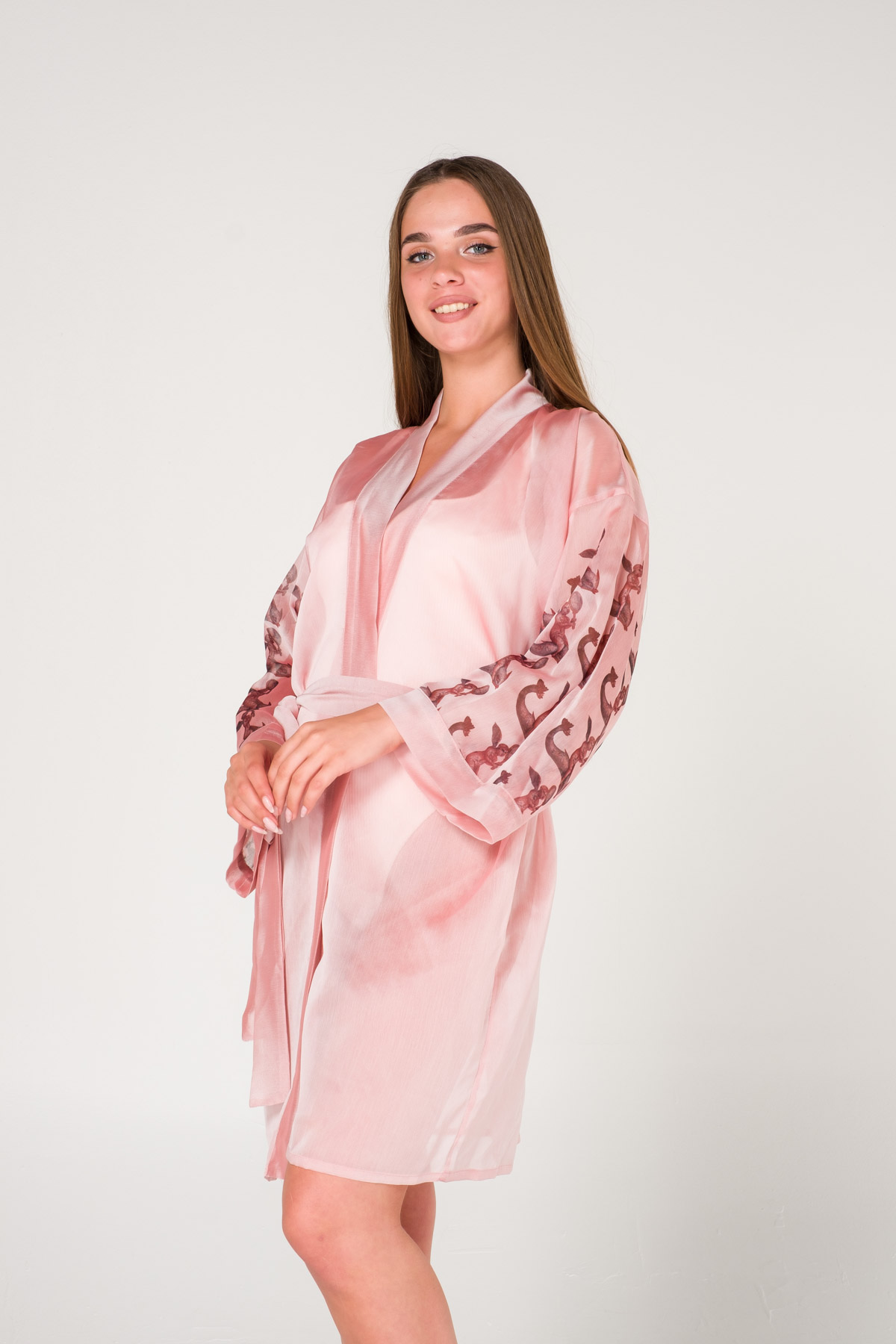 YUNUSLU EROS BASKILI İPEK ŞİFON KİMONO